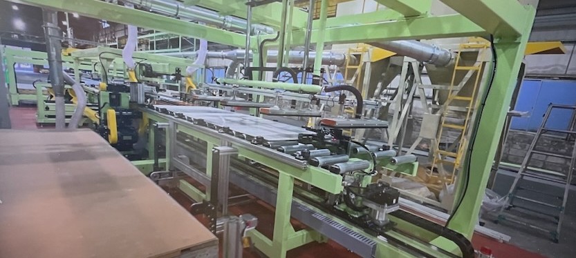 Die Maschine arbeitet in einer industriellen Umgebung, wie sie für Produktionslinien typisch ist, in denen es zu Staubentwicklung bei der Bearbeitung und dem Transport von Mineralwolleplatten kommt. Zu den Umgebungsbedingungen gehören der Dauerbetrieb im Automatikmodus, erhöhte Bewegungsdynamik und begrenzter Einbauraum.