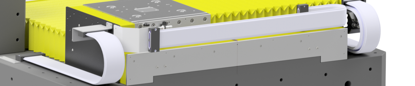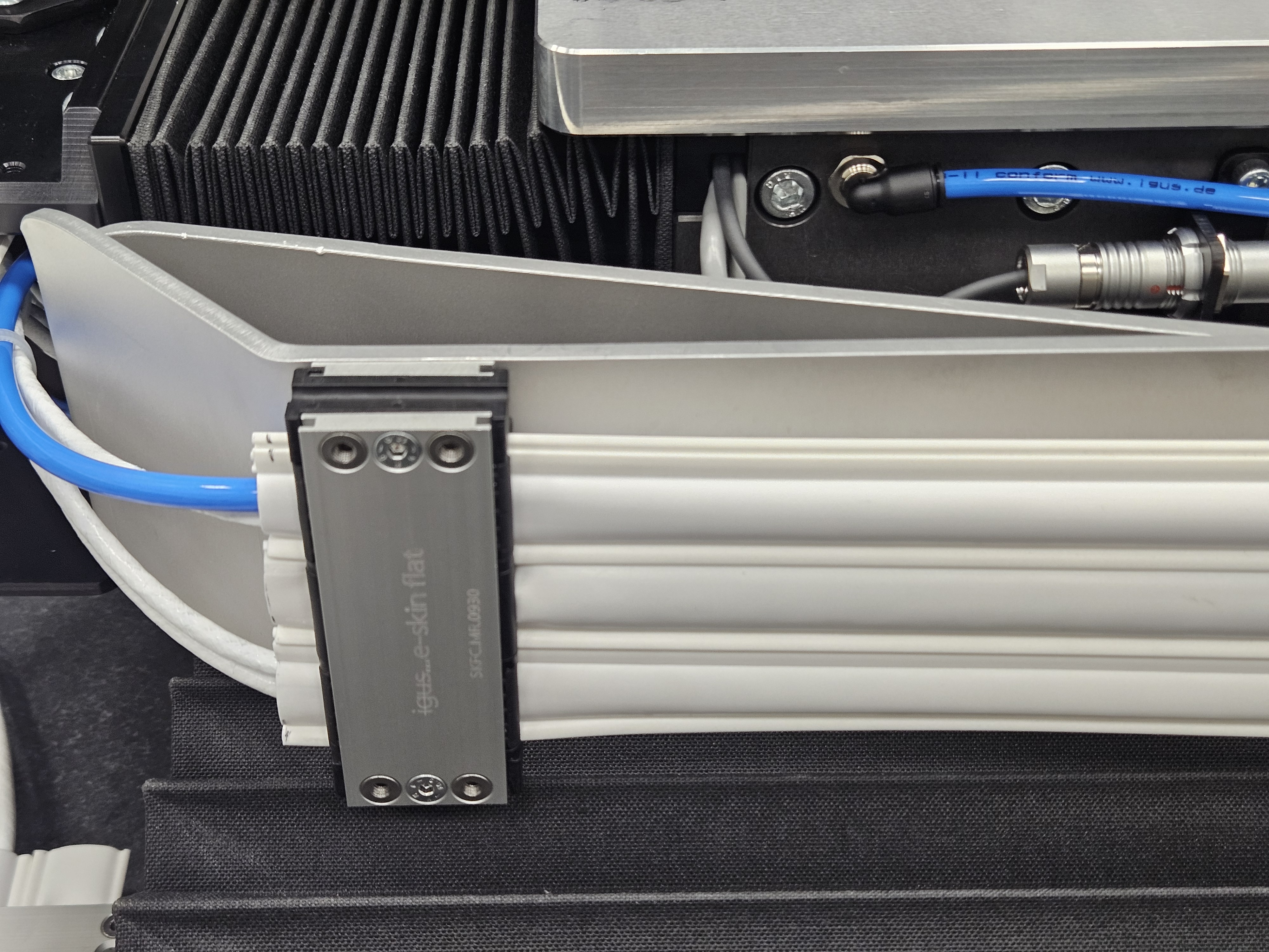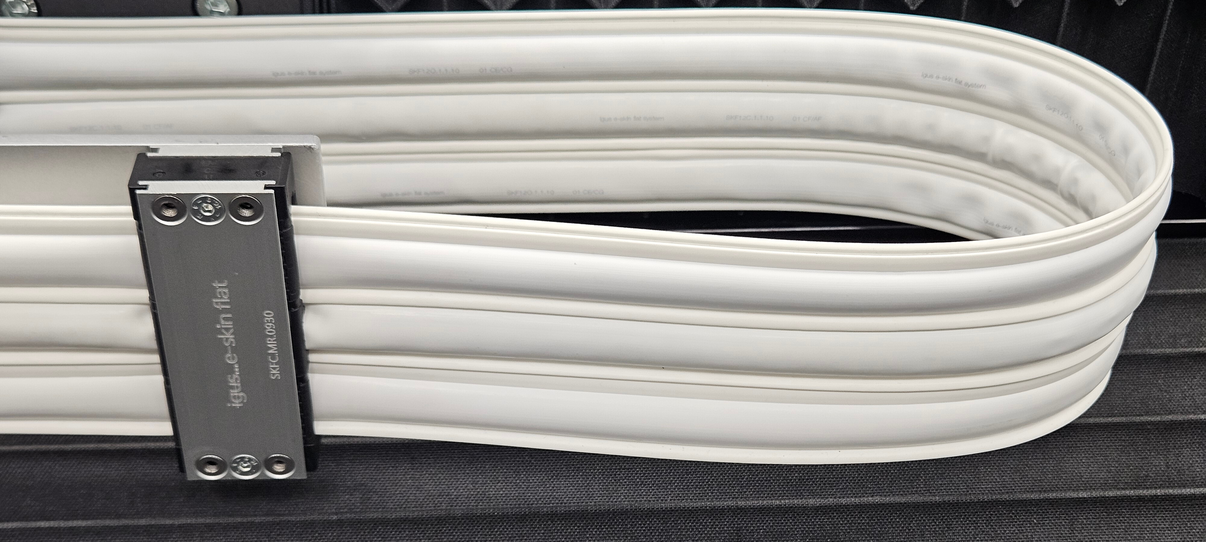 Der Endkunde verlangte einen sehr strengen ISO-Klasse-1-Standard für die Betriebsumgebung mit einer Genauigkeit im Submikrometerbereich für Positionierung und Bewegung. Angesichts dieser Anforderungen sind Standard-Kabelketten für eine derart extreme Präzision ungeeignet: Die Reibung zwischen den Gliedern erzeugt Mikrovibrationen, die zu messbaren Positionierungsfehlern in Luftlagersystemen führen. Darüber hinaus sind herkömmliche Ketten eine Quelle für Partikelverunreinigungen, was in sterilen Umgebungen inakzeptabel ist. Schließlich führt die Komplexität der Verlegung von Strom-, Hochfrequenzkabeln und pneumatischen Luftschläuchen oft zu „überladenen” Konstruktionen, die sowohl die Leistung als auch die „attraktive” High-End-Ästhetik beeinträchtigen, die unsere globalen Kunden erwarten. Um diese Einschränkungen zu überwinden und den Stand der Technik neu zu definieren, hat Mager die innovative igus® e-skin flat integriert. Diese Lösung ermöglicht die „nahtlose” und verdeckte Verlegung aller erforderlichen Kabel und Druckluftleitungen unter Beibehaltung eines schlanken und professionellen Designs. Da die e-skin flat eine einteilige, bandartige Struktur ohne Stifte oder Verbindungsstellen ist, arbeitet sie absolut geräuschlos. Dadurch wird die Übertragung von Vibrationen auf den Luftlagertisch verhindert, was eine beispiellose Genauigkeit in der Messtechnik und Mikrobearbeitung ermöglicht. Das Hochleistungspolymer gewährleistet, dass keine Partikel abgegeben werden, und erfüllt damit die strengsten Reinraumanforderungen.
