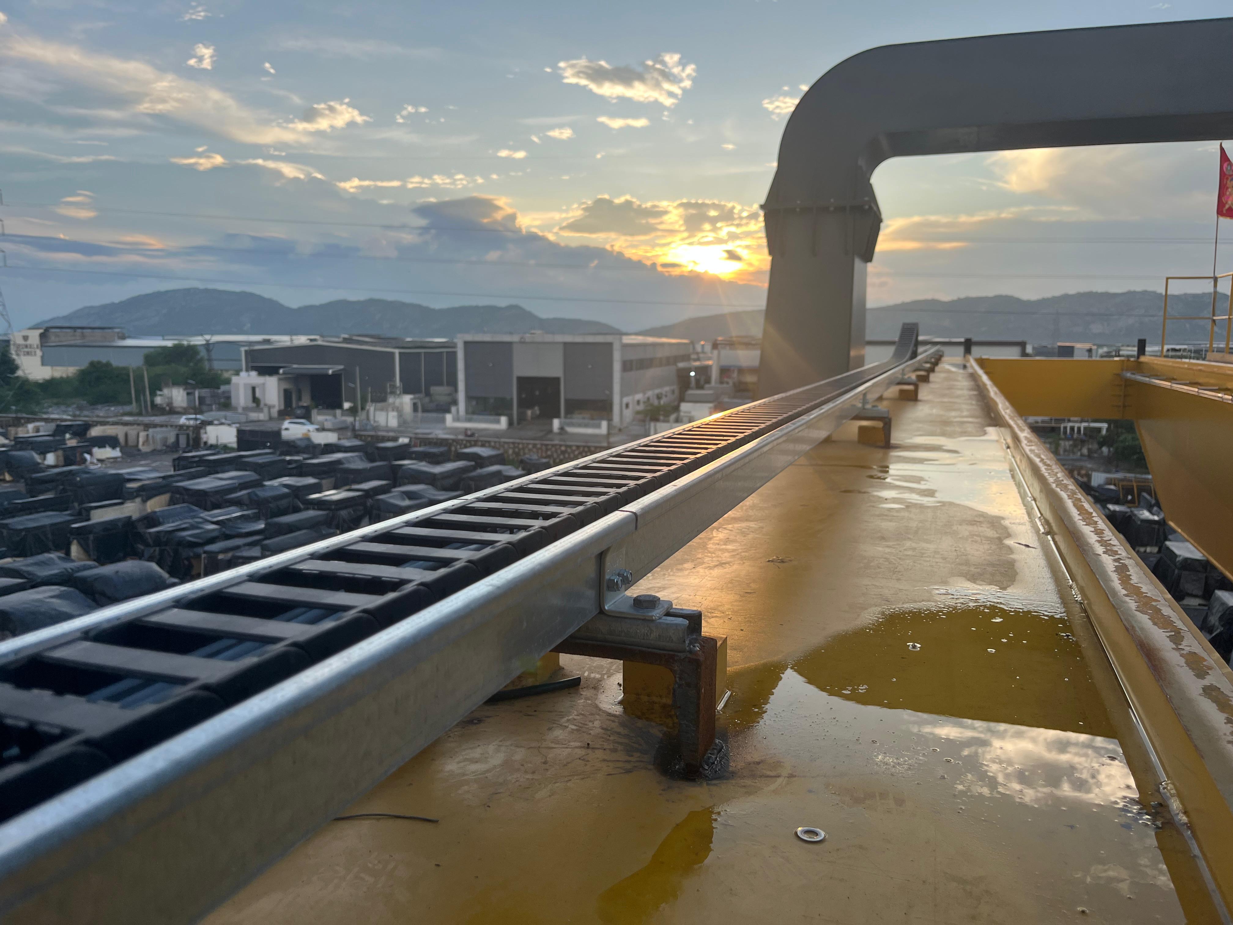 Da Portalkrane im Außenbereich installiert werden und die Installationshöhe des zuvor verwendeten Festoon-Systems 15 Meter beträgt, ist es ohne geeignete Sicherheitsmaßnahmen unsicher, das Festoon-System in dieser Höhe zu installieren. Da die Igus-Energieketten einfacher zu installieren sind als das Festoon-System und sie auf dem Kranlaufsteg installiert wird, gibt es keine Bedenken hinsichtlich der Sicherheit. Da das Kabel des Festoon-Systems innerhalb von zwei Trägern des Krans installiert wurde, neigt es dazu, sich mit dem Hebeseil des Krans zu verheddern, was bei starkem Wind ein großes Problem darstellt, da der Kunde den Portalkran unter diesen Bedingungen nicht verwenden kann, was zu Produktionsausfällen aufgrund der Nichtverfügbarkeit des Krans führt.
