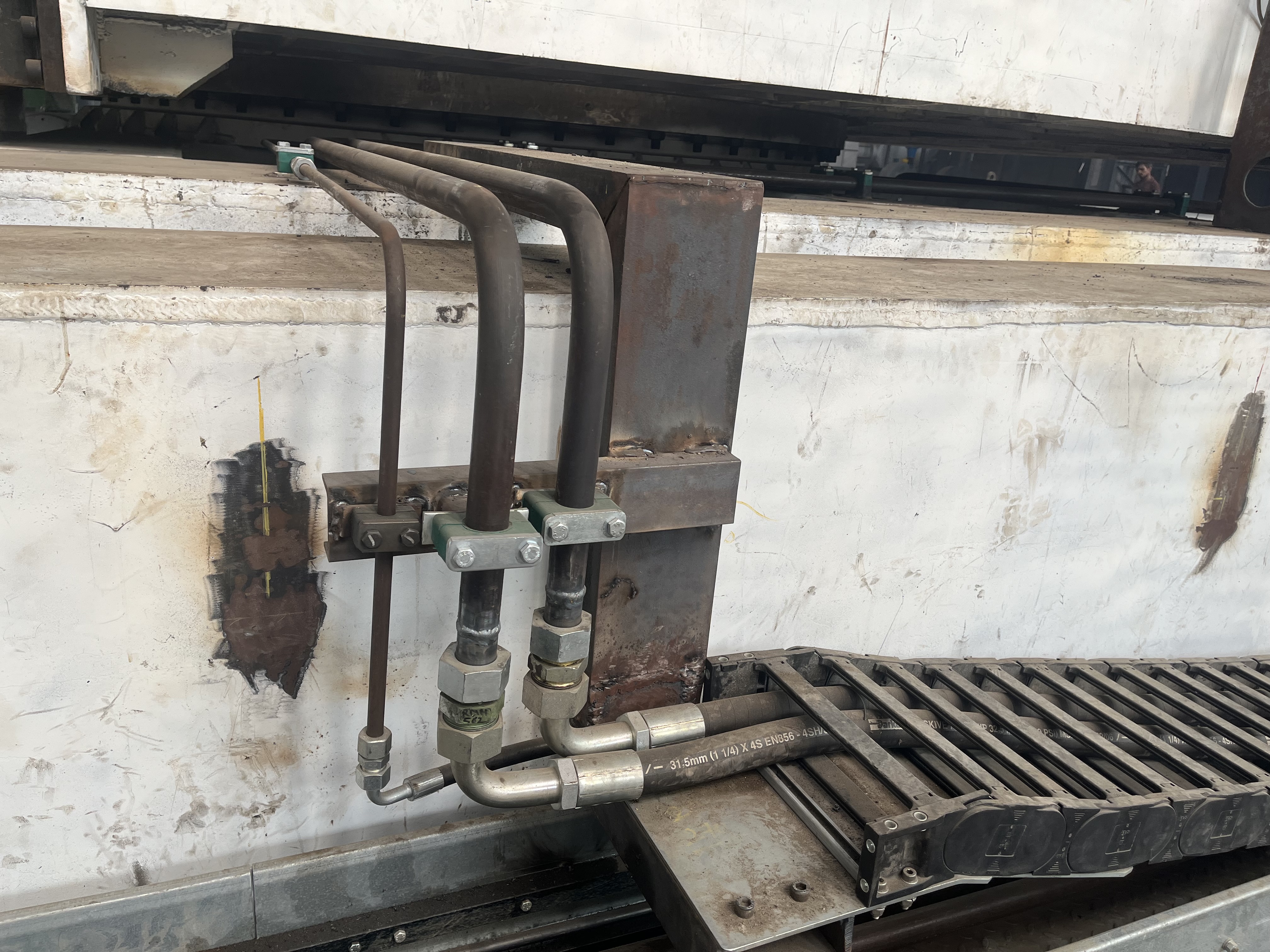 Der Drucker arbeitet in einer anspruchsvollen industriellen Umgebung, in der Zementstaub und Zuschlagstoffe, hohe Luftfeuchtigkeit, Vibrationen und große Verfahrwege für schwere bewegliche Massen vorhanden sind. Die wichtigsten technischen Daten sind wie folgt: – Druckkapazität von 8 m Länge (X), 6 m Breite (Y) und 2,5 m Höhe (Z) – Architektur: kartesisches System mit festem Portal und beweglicher Z-Achse – Verfahrgeschwindigkeiten bis zu 1000 mm/s – Lange kontinuierliche Verfahrwege in XY Die größte Herausforderung bestand darin, eine zuverlässige und dauerhafte Führung von Kabeln und Schläuchen über sehr lange Strecken zu gewährleisten und Ausfälle durch Abrieb, Verschmutzung oder mechanische Beanspruchung zu vermeiden, insbesondere in einer für elektrische Komponenten aggressiven Umgebung.