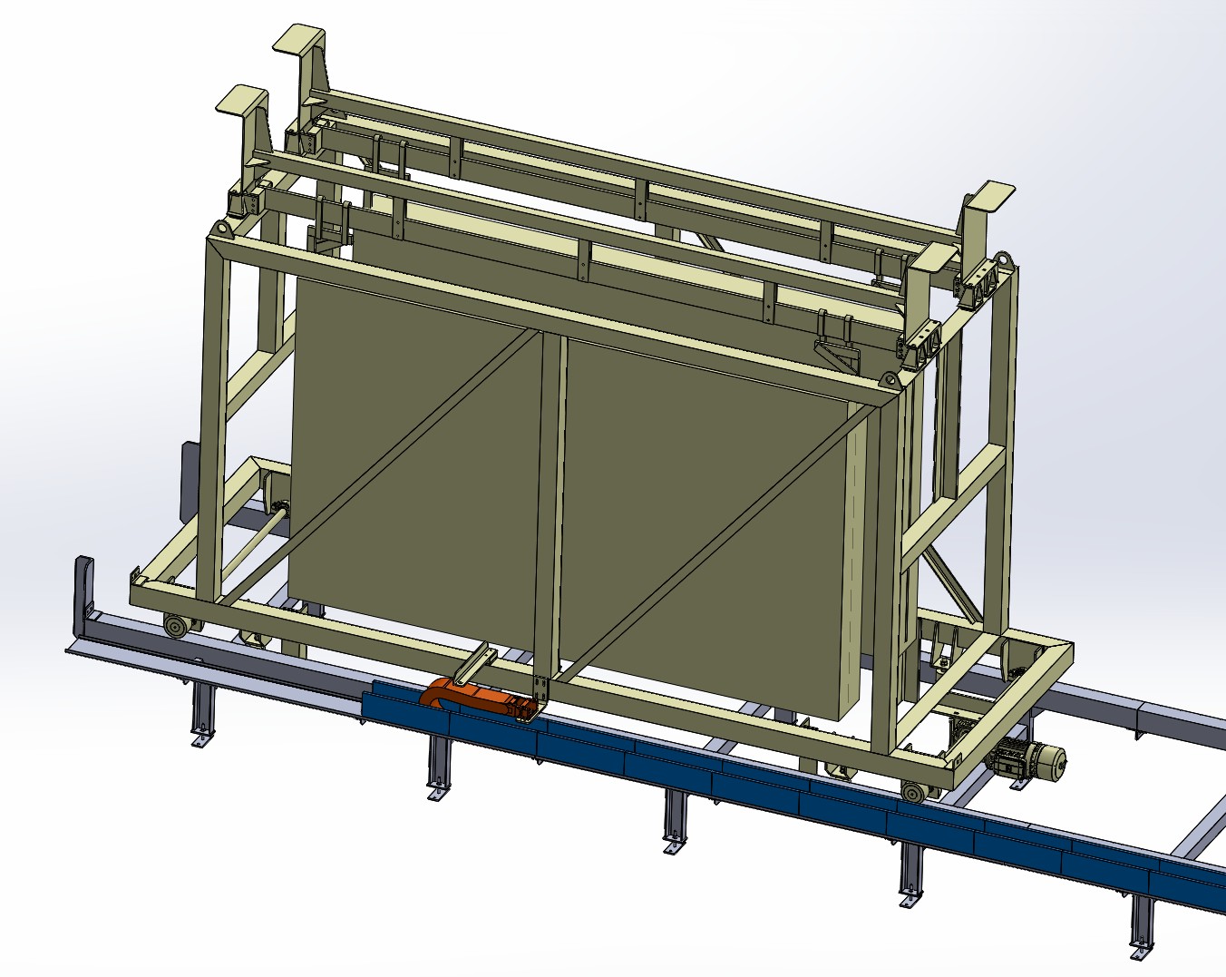 Da es sich um Wagen mit doppelter Ladung handelt, steigern wir die Effizienz um 200 %. Durch die Verwendung derselben Schiene für beide Ketten sparen wir Materialkosten und Platz. Durch die Verwendung von EG+-Material verlängern wir die Lebensdauer des Systems. Durch die Bestellung als Readychain-System wird auch die Montagezeit verkürzt.
