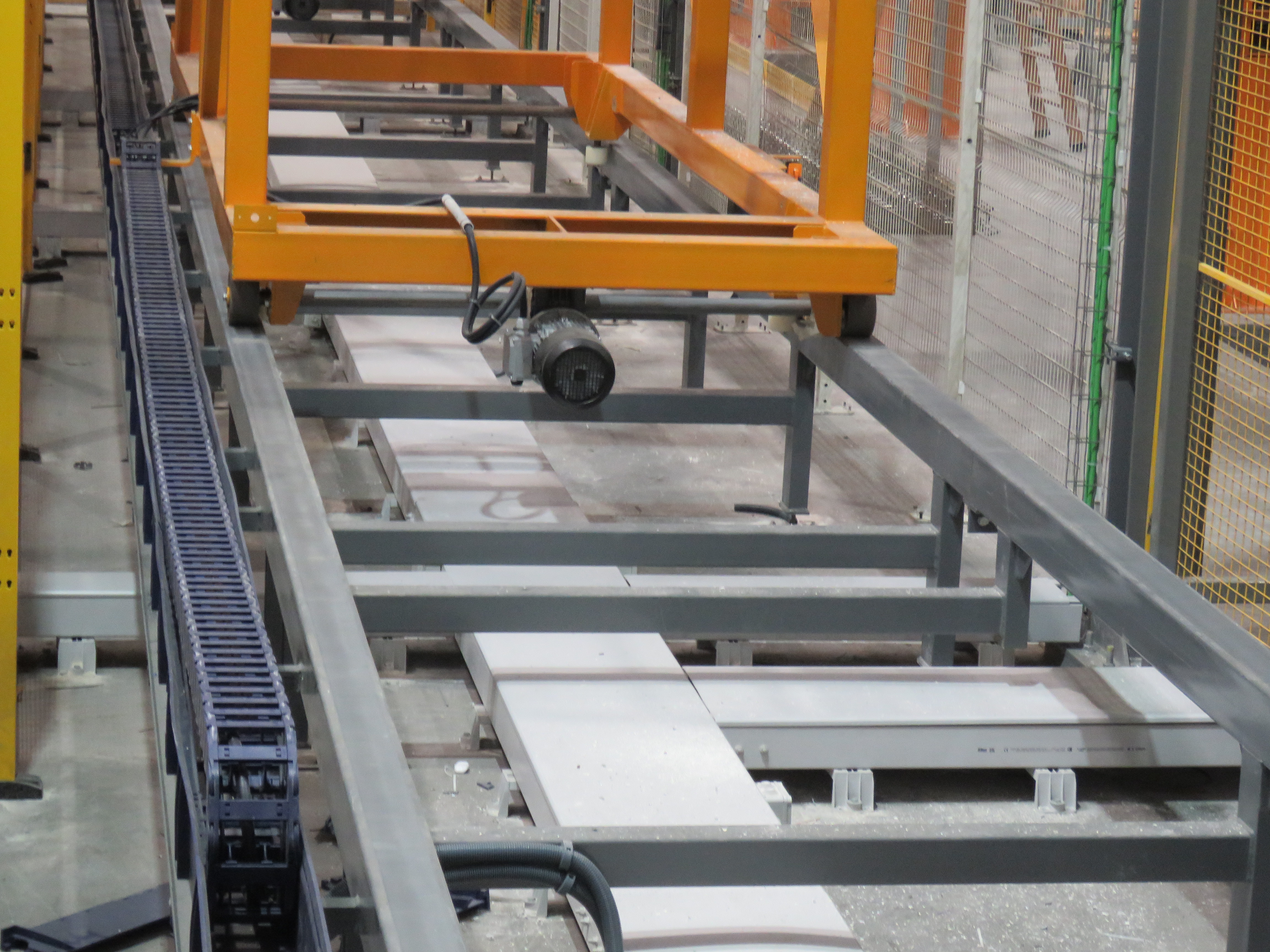 Hohe Dynamik zur Verkürzung der Zykluszeiten unter Beibehaltung der Zuverlässigkeit und Verringerung des Verschleißes der Komponenten, da es sich um Geräte handelt, die rund um die Uhr an 365 Tagen im Jahr in Betrieb sind. Wir konnten Spitzengeschwindigkeiten von 4 m/s und Beschleunigungen von 3,5 m/s^2 erreichen und dabei Längswege von 25 m zurücklegen. All dies war dank der Energieführungsketten der Serie P4.1 sowie der ChainFlex-Kabel von IGUS möglich. Da wir diese Formate zusätzlich in ReadyChain erhielten, konnten wir die Montage- und Installationszeiten drastisch reduzieren. Was die vertikale Achse (Y) betrifft, so konnten wir mit dem Guidelok-System auch eine erhebliche Gewichtsreduzierung für die Führung der vertikalen Kette erzielen, im Vergleich zu Metallschienensystemen, die nicht nur schwerer, sondern auch teurer und im Wartungsfall weniger zugänglich sind. Auch hier haben sich die Installationszeiten verkürzt, da praktisch alle Teile vormontiert geliefert werden.