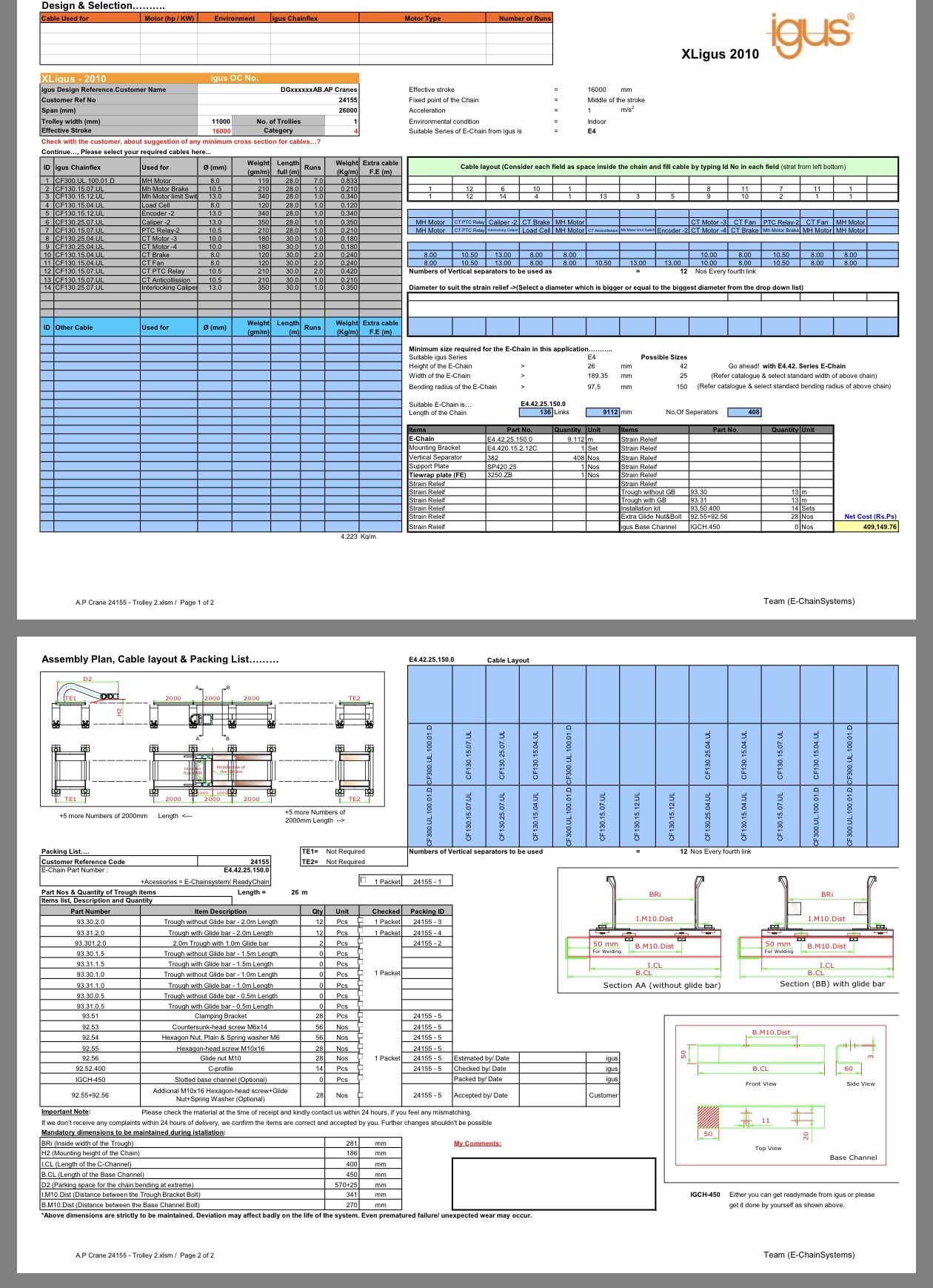 Herausforderung bei der Kabelführung für bewegliche Laufkatzen: Der ursprüngliche Entwurf für die Kabelführung auf der beweglichen Laufkatze sah schwere und sperrige Kabelwagen für große Stromkabel vor. Dieses System führte jedoch zu mehreren kritischen Herausforderungen: 1. Erhöhter Hakenanflug, der sich negativ auf die Kranleistung und die Hubeffizienz auswirkte. 2. Komplexe und unsichere Handhabung, da schwere Kabelschlaufen auf eine Höhe von 28 Metern über dem Boden angehoben und manuell in die Trägerkanäle eingeführt werden mussten. 3. Höhere Sicherheitsrisiken, da mehrere Mitarbeiter in großer Höhe arbeiten mussten. 4. Längere Installationszeit, was zu einem zusätzlichen Zeitaufwand von 4 Tagen für die Montage und die elektrischen Anschlüsse führte. Optimierte Lösung mit IGUS-Energieketten: Um diese Herausforderungen zu bewältigen, arbeiteten wir unter der Leitung von Herrn Pritam Shah mit IGUS India zusammen. Durch den Einsatz ihres kompakten, leichten Energiekettensystems konnten wir die früheren Einschränkungen erfolgreich beseitigen. Diese innovative Lösung ermöglichte es uns, den Hakenanschlag zu reduzieren, die Installation zu vereinfachen, die Sicherheit der Mitarbeiter zu verbessern und die Montagezeit erheblich zu verkürzen – was zu erheblichen Gewinnen in Bezug auf Betriebseffizienz, Sicherheit und Projektzeitpläne führte, die alle für den Erfolg dieses Projekts entscheidend waren.