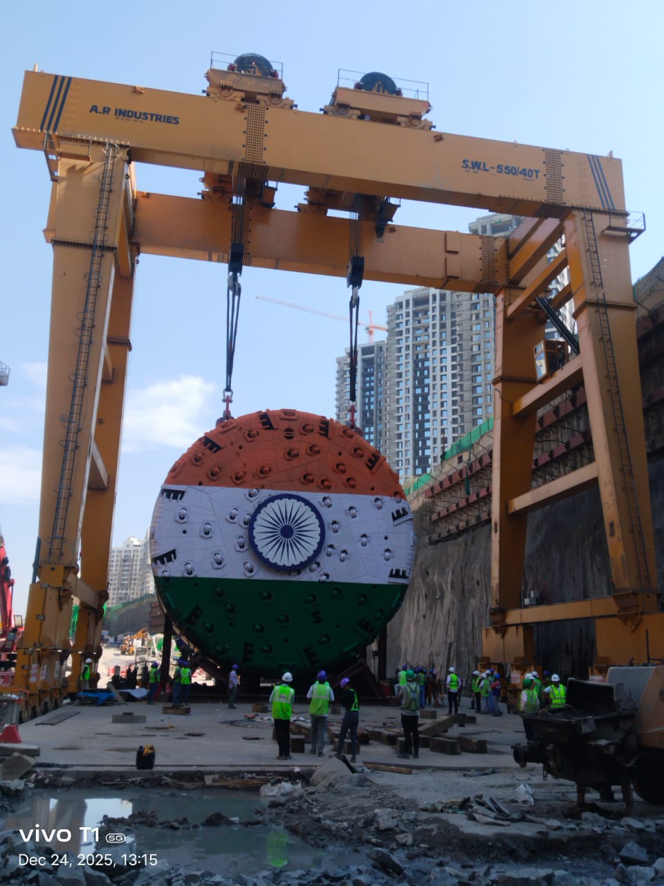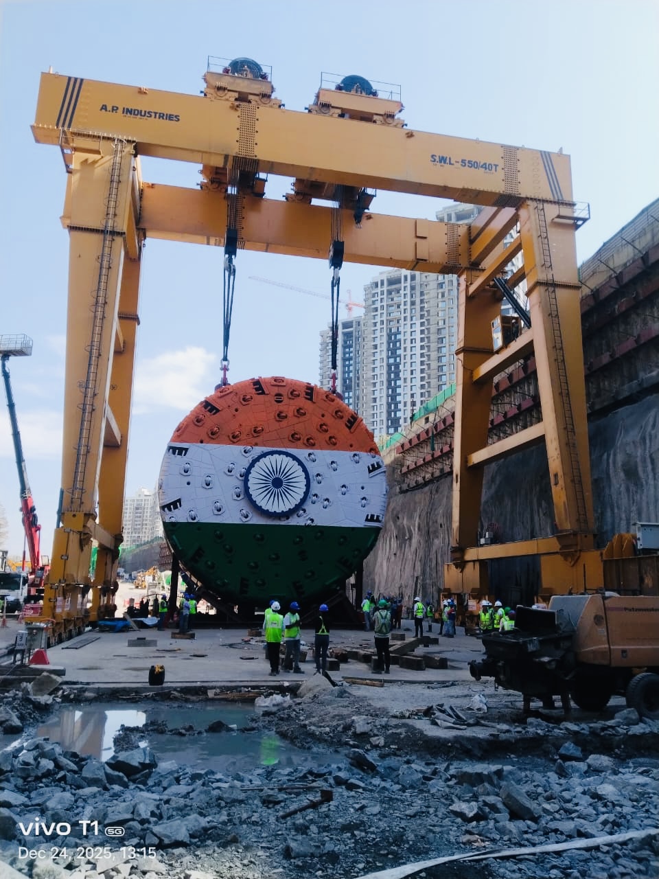 Projektübersicht: Das Projekt umfasste die Konstruktion und Herstellung eines 550-MT-Portalkrans für den Transport der Herrenknecht-Tunnelbohrmaschine (TBM) und stellte einen historischen Meilenstein im indischen U-Bahn- und Stadtverkehrssektor dar. Diese Initiative trug zur erfolgreichen Umsetzung des größten und längsten unterirdischen Tunnels bei, der jemals für ein städtisches Verkehrsprojekt in Indien gebaut wurde. Bei der eingesetzten TBM handelte es sich um eine 13,34 Meter lange Einfachschild-TBM – die TBM mit dem größten Durchmesser, die jemals in einem indischen Stadtprojekt eingesetzt wurde, und die erste ihrer Art in U-Bahn-Anwendungen. Mit einem Gewicht von etwa 400 Tonnen gräbt dieses technische Wunderwerk zwei dreispurige Tunnel mit einer Länge von 5,75 km und 6,09 km und setzt damit einen neuen Maßstab als Indiens längste unterirdische Stadtstraßentunnel.