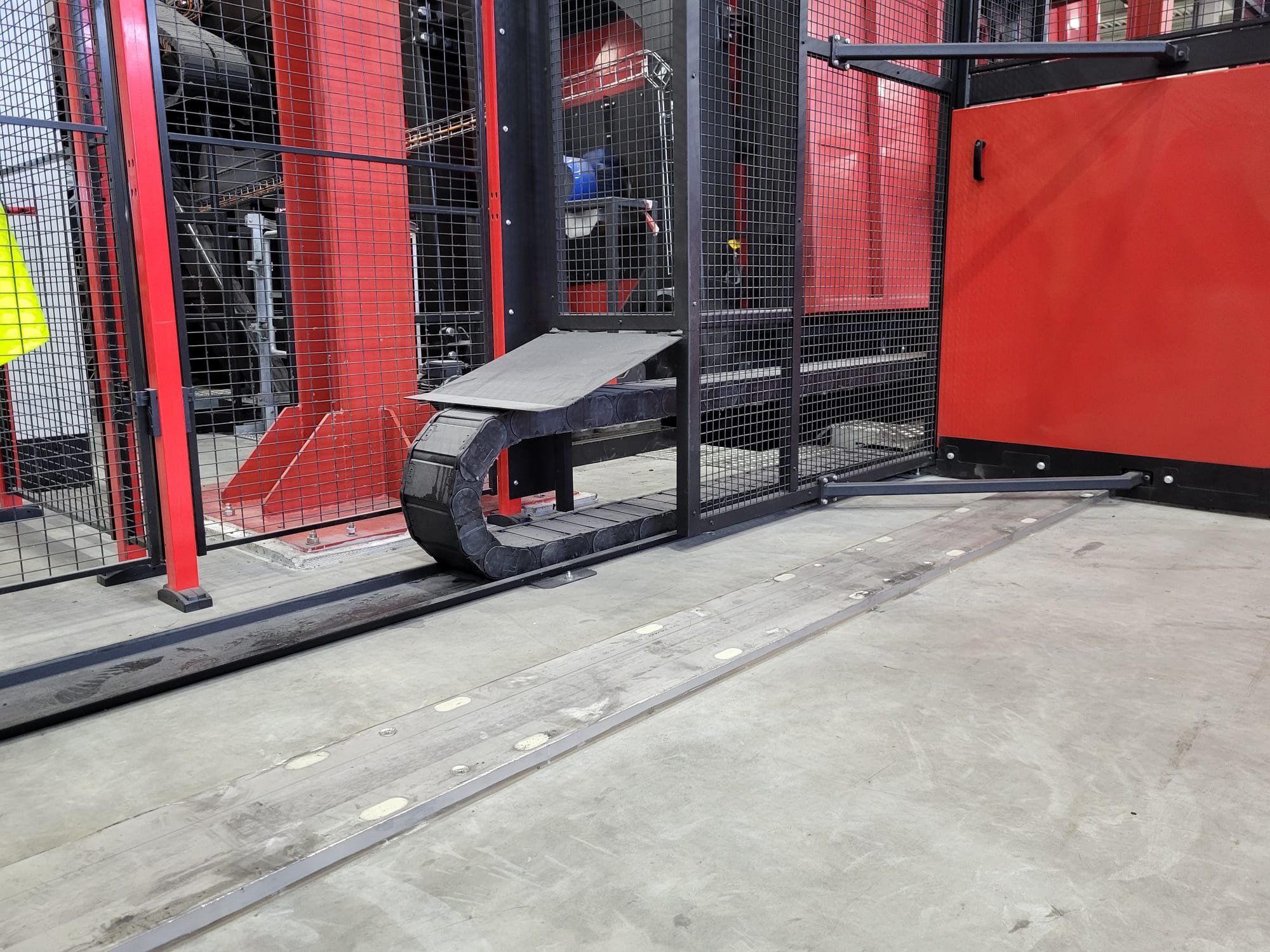 Es wurden Schleppketten mit einer Breite von mehr als 600 mm in Betracht gezogen, mit einem doppelten Mittelsteg, um Strom- und Steuerkabel zu isolieren.