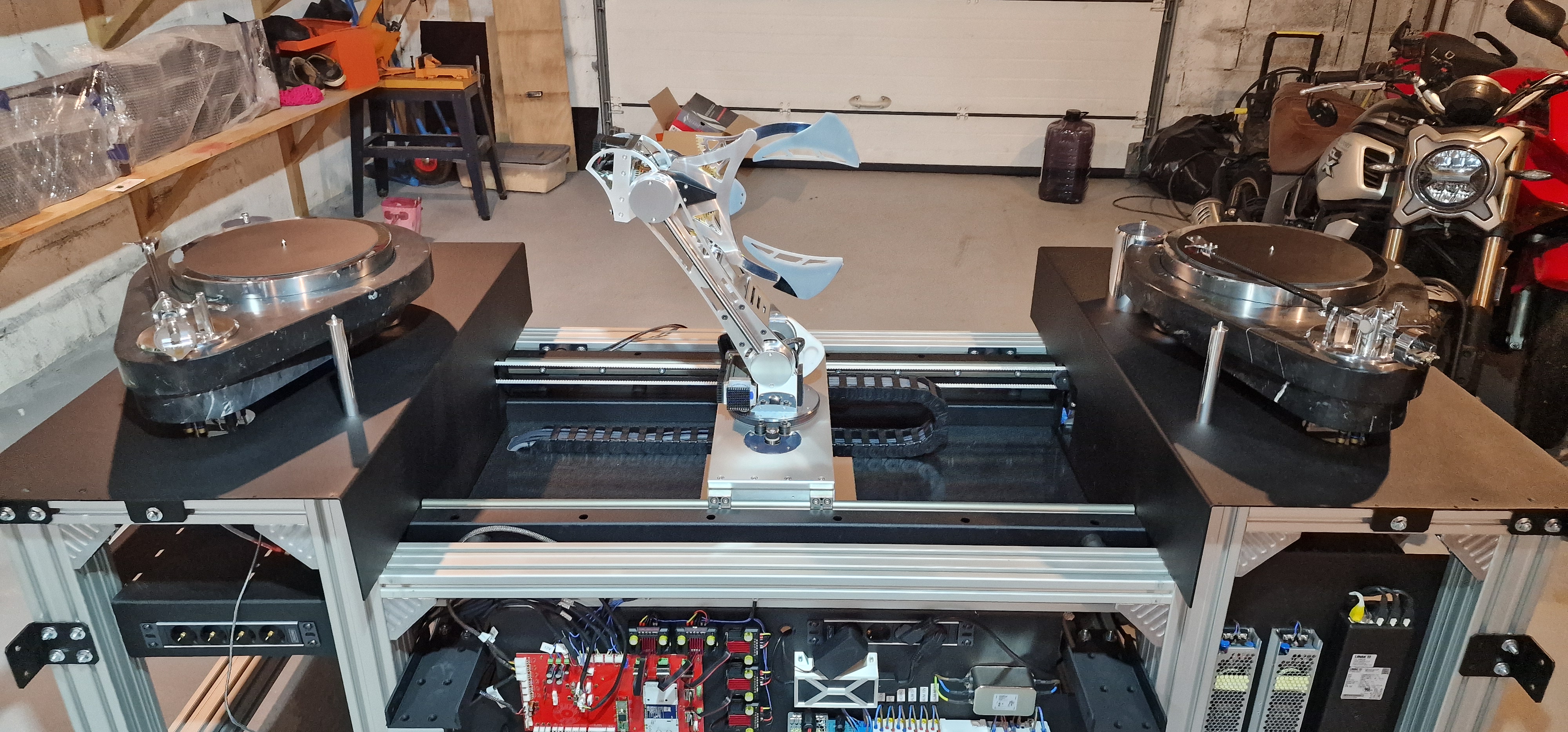 Sur la version précédente de nos jukeboxes, les câbles étaient moins adaptés et ont a plusieurs reprise provoqué des disfonctionnements : torsion progressive, frottements, traction sur connecteurs, et comportements différents selon la position de l’axe. Le porte-câbles et les câbles igus ont résolu cela en imposant un chemin contrôlé et répétable, en protégeant les câbles des frottements et du pincement, en garantissant un rayon de courbure constant, et en améliorant la stabilité électrique (moins de micro-coupures liées aux mouvements), rendant l’ensemble plus silencieux et plus propre visuellement.