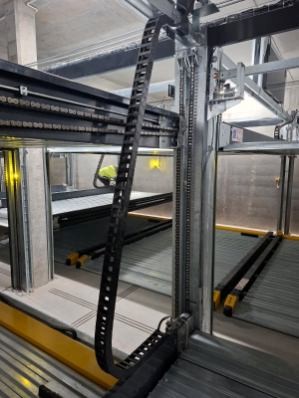 Durch die Möglichkeit, die Energieführungsketten zu verschachteln, konnte wertvoller Platz in der Anwendung eingespart werden. Die Energieführungsketten sind hochbelastbar und verschleißfest und begrenzen den Biegeradius, um die Lebensdauer der Leitungen zu verlängern.