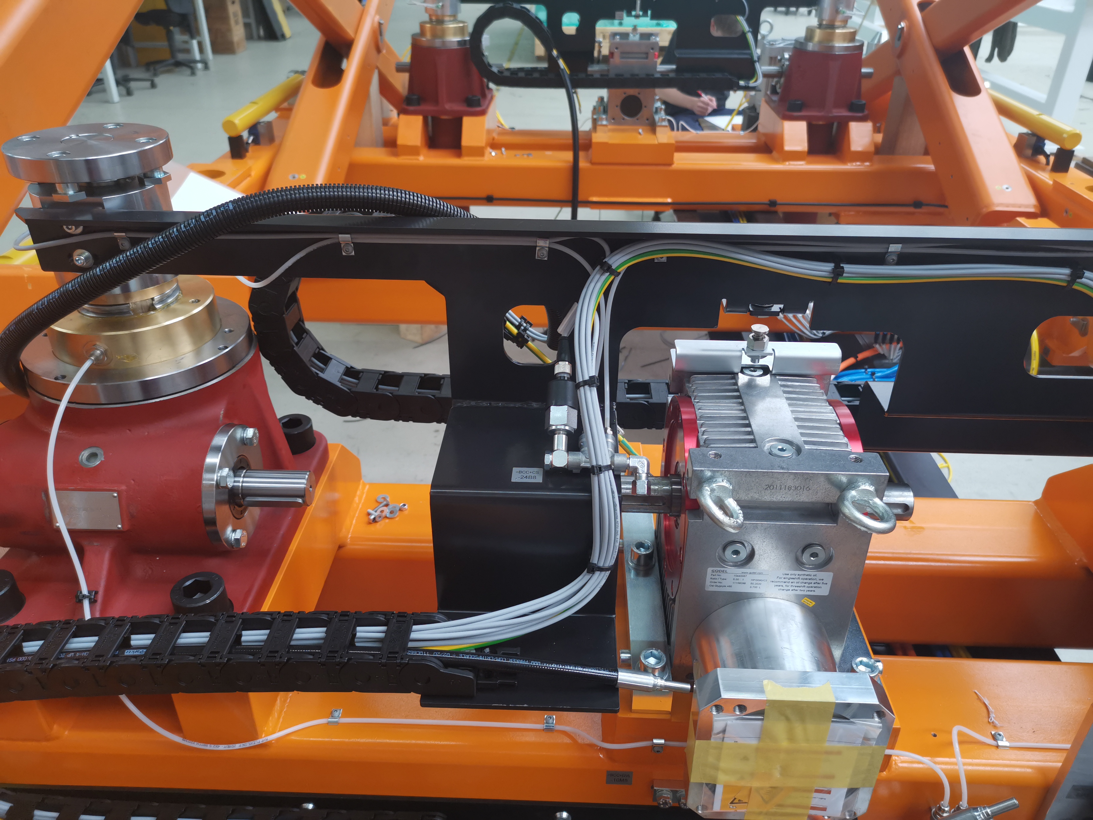Eine zentrale technische Herausforderung bestand in der Konstruktion und Integration eines Energieversorgungssystems, das lange Verfahrwege und mehrachsige Bewegungen auf extrem begrenztem Bauraum ermöglicht. Der maximale Verfahrweg des Wagens betrug bis zu 15 m, wobei der verfügbare Platz auf nur 5 m begrenzt war.
