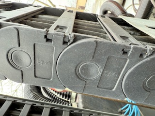 An dieser Maschine haben wir eine IGUS-Energieführungskette für die X-Achse und eine IGUS-Energieführungskette für die Z-Achse eingebaut. Darüber hinaus sind an anderen Stellen der Maschine Produkte aus dem IGUS-Linearprogramm zu finden.